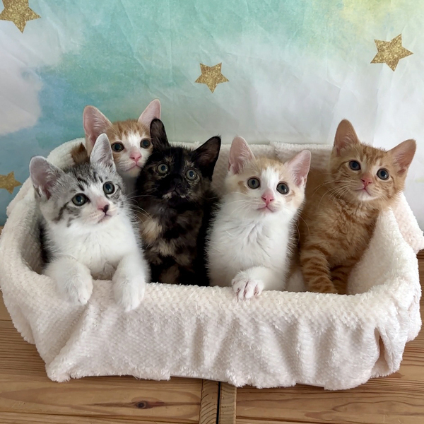 | 特徴(性格など) | ※2匹ペア以上での譲渡になります。 ◎あさり(サバ白)オス ◎ちくわ(茶白)オス ◎しじみ(サビ)メス ◎さんご(薄茶白)メス ◎うに(茶トラ)メス 保護当日少し猫風邪をひいていたのでみなとねこメンバーのご実家にお預かりいただき隔離、投薬をしました。猫経験豊富な高齢のご両親が大事にお世話してくださったおかげで、すっかりキレイになりました。 人間が大好きな甘えん坊に仕上がりました。成長期ですのでガツガツ食べて時々緩便になりますが少しずつ胃腸が追いついてくると思います。 ●健康状態 とても健康で元気です ウイルス検査(エイズ・白血病)陰性 ワクチン 駆虫 検便 シャンプー 爪切り |