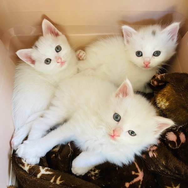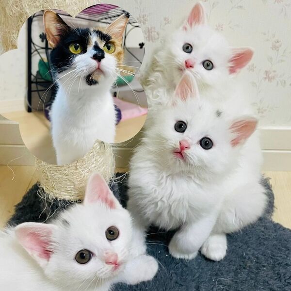 | 特徴(性格など) | とっても賑やかなファミリーです。 保護が早かったこともあり、子猫は人には物怖じしない無邪気な子たちです。 ママは高齢者に可愛がられてきたので人慣れしていて、家猫生活にも早く馴染んでいます。 ◎ルナ(三毛)母猫メス ◎うさこ(白短毛)メス※キトンキャップあり ◎マルス(白長毛)オス ◎アポロ(白長毛)オス※キトンキャップあり ※ママのルナと子猫のうさこ、子猫のマルスとアポロ2組がそれぞれ別の預かり宅にいるため、この組み合わせでの譲渡となります。 ■譲渡条件 ・子猫ペアについてはお留守が短い(4−5時間程度)お家で日々の体調管理をしっかりと行なっていただきたいです。 ・共働きなどの方はぜひ避妊去勢手術を済ませた生後5ヶ月以上の子をご検討ください。 ・猫と暮らしたことのない未就学のお子様のいらっしゃるご家庭への猫の譲渡については、アレルギー検査や猫カフェなどで猫と触れ合う経験をされた上で、猫に過度なストレスがかからないかどうか、誤食や脱走のリスクを避けられるか、確認させていただきます。 ●健康状態 とても健康で元気です 避妊手術済み(ママのルナのみ) ウイルス検査(エイズ・白血病)陰性 ワクチン 駆虫 検便 シャンプー 爪切り |