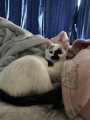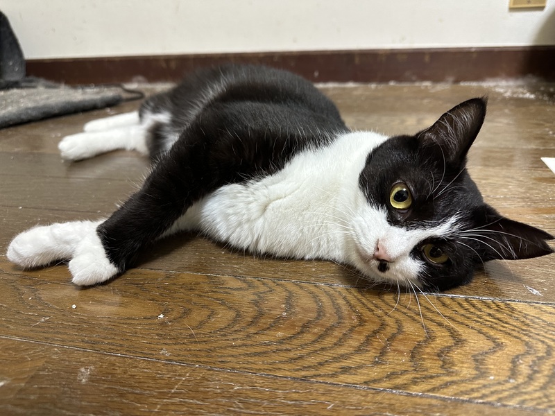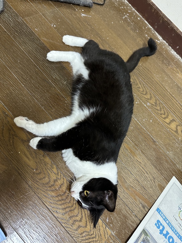 | 特徴(性格など) | 白黒 お腹を撫でられるのが大好き 慣れてきて何度もヘソ天するほど。 |