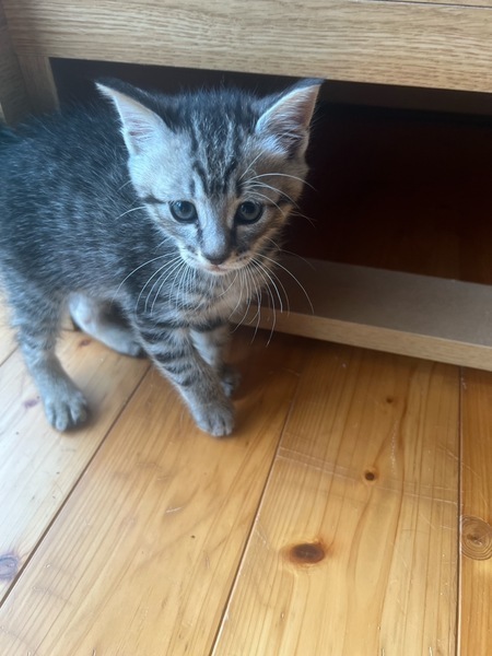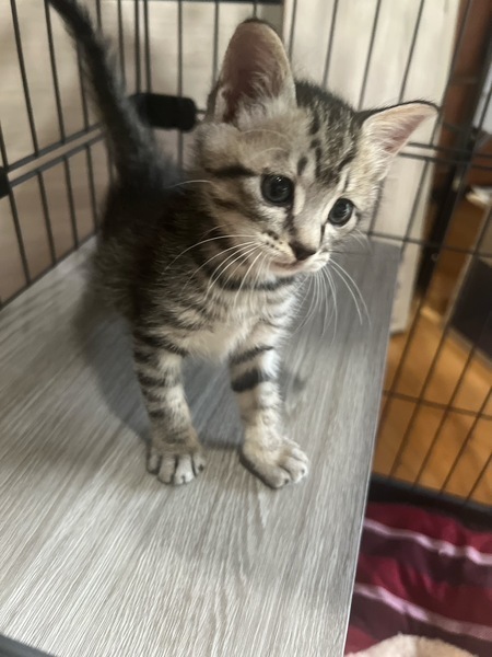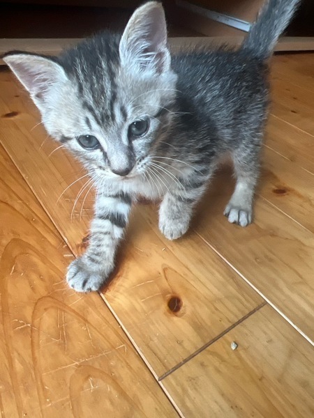 | 特徴(性格など) | 猫の種類 キジ猫 年齢 生後約2ヶ月 健康状態 めっちゃ元気 良好 猫白血病と猫エイズ検査陰性。 3種混合ワクチン 6月16日に1回目接種。 一ヶ月後に2回目のワクチン接種予定。 便検査済み 寄生虫なし。 体重も保護した時は530gでしたが今は1kgになり、とても順調に育っています。 |