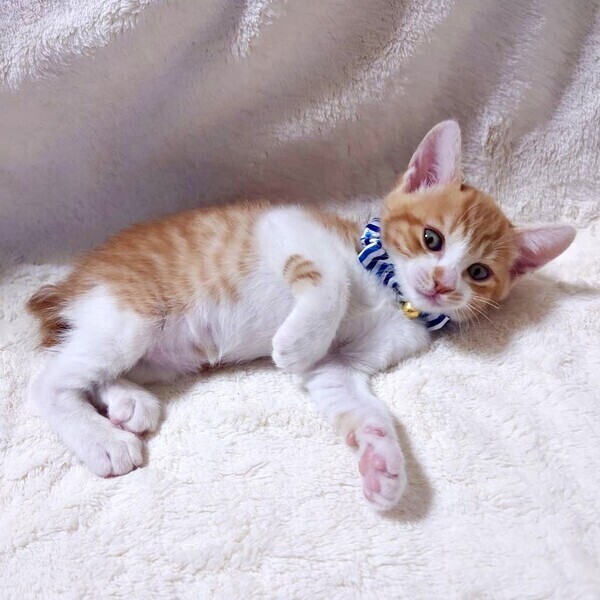 | 特徴(性格など) | 【仮名】しおんくん 【性格】シマシマ茶白のしおんくん☆ 右前足にキジ模様のワンポイントが魅力的♥ 運動神経抜群で大人猫たちとの追いかけっ子も負けてません。 疲れ果てるまでにゃんプロやおもちゃ遊んだあと、 電池切れてコテンと寝ちゃう様子が可愛い‼ れおんお兄ちゃんのあとに控えめに膝に乗っての ゴロゴロも愛おしいです。 ある程度小さなおこちゃま(人間)がいる オウチでも免疫があるから大丈夫! 沢山遊んであげてナデナデしてあげてください☆ 一緒に育った兄妹や 同世代のお友達とのお迎えをお願い致します ※1ピキ譲渡不可 |