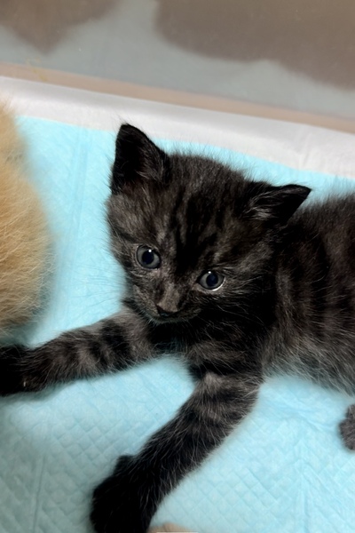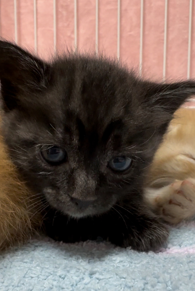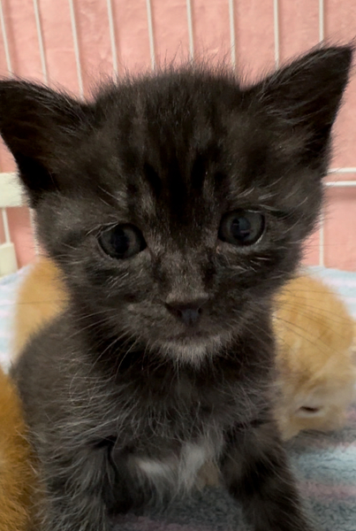 | 特徴(性格など) | 黒い毛の根本が白くタビー(縞)になってます。 茶トラくんとm三兄妹。 性格はおっとり、人懐っこい。 |