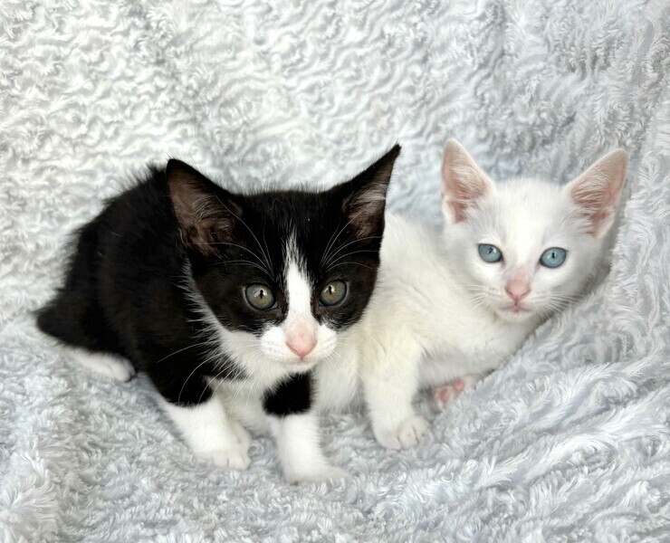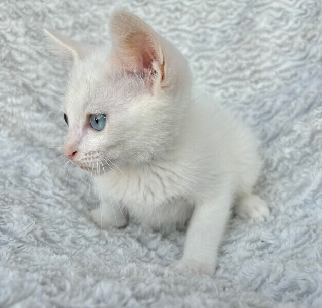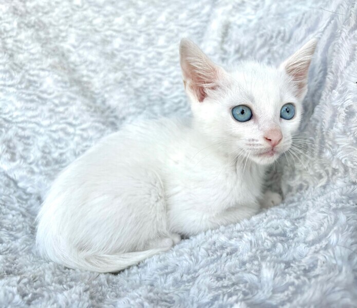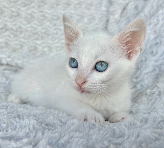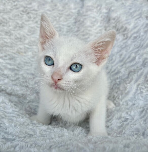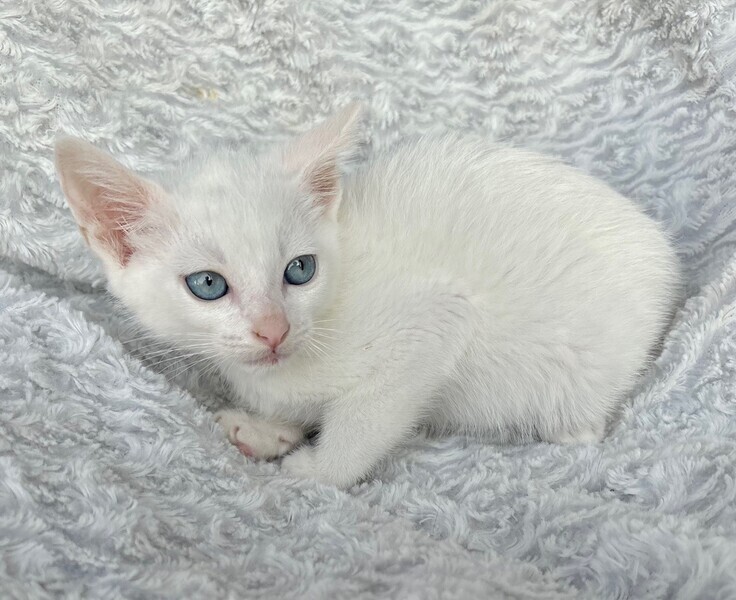 | 特徴(性格など) | 【仮名】ウーロンくん 【性格】真っ白&ブルーアイのウーロンくん♪ ホントに綺麗なブルーアイです! 意外とボクちゃんで兄妹のジャスミンとの にゃんプロでは連戦連敗(笑) 思わず守ってあげたくなる草食系男子なんです♪ 兄妹とにゃんプロして良く寝てよく食べ スクスクと成長中のハナマルにゃんこ♪ ともに過ごしている兄妹のジャスミンちゃんと 一緒のお迎えをお願いしたいと思います♪ ※1ピキ譲渡不可 |