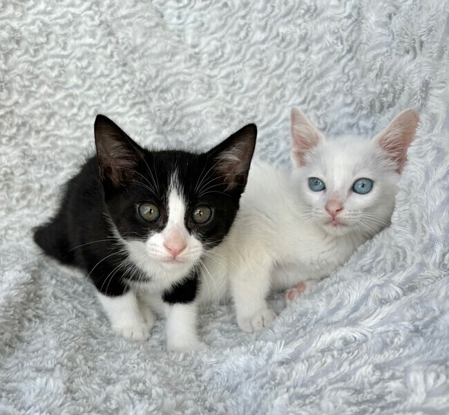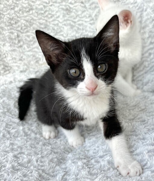| 特徴(性格など) | 【仮名】ジャスミンちゃん 【性格】ザ・ハチワレなジャスミンちゃん♪ キレイなシンメトリーハチワレ! なかなか気が強く兄妹のウーロンくんとの にゃんプロでも連戦連勝♪ 甘える時とのオンオフがメリハリはっきりしてる にゃんこです(笑) 兄妹とにゃんプロして良く寝てよく食べ スクスクと成長中のハナマルにゃんこ♪ ともに過ごしている兄妹のウーロンくんと 一緒のお迎えをお願いしたいと思います♪ ※1ピキ譲渡不可 |