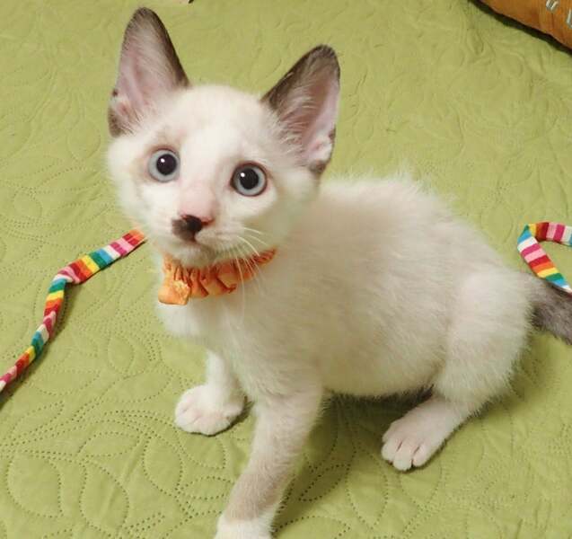 | 特徴(性格など) | ★★★東京・東銀座★猫の譲渡会★駅チカ2分東劇隣り★★★ 子猫ちゃん〜成猫ちゃんまで参加します ※掲載の猫ちゃんとのお見合いは譲渡会場になります。 事前のご予約は必要ございませんので当日会場へお越しくださいませ。 ◇会場のご案内・開催日時等、詳しくは下記をご覧ください。 猫の未来とびらホームページ http://nekonomiraitobira.com/ ★☆★「猫の未来とびら」譲渡会参加予定の猫ちゃんになります★☆★ ◇仮名◇えまるくん ◇毛色◇シャムミックス ◇性別◇オス ◇性格◇ 毛色も外見も全く違う兄妹5匹で育ちました。 多分、様々なお父さん猫がいる環境だったのだと思います。 えまるくんは完全に洋猫ミックスで、ブルーの目、シールポイントが入った毛色、目の間が広くて独特の顔をしています。 兄妹と元気いっぱい遊んでいますが、時として反応が遅い感じがするので、もしかすると動体視力か視野で少し劣っているのかもしれません。 えまるくん、性格はのんびり系で穏やか。 今は薄いベージュ色の部分が成長と共に色が変わってくるかと思います。 控えめ甘えん坊で、とても可愛い子です! 譲渡会に参加予定の猫ちゃん一覧 http://nekonomiraitobira.com/archives/category/next |