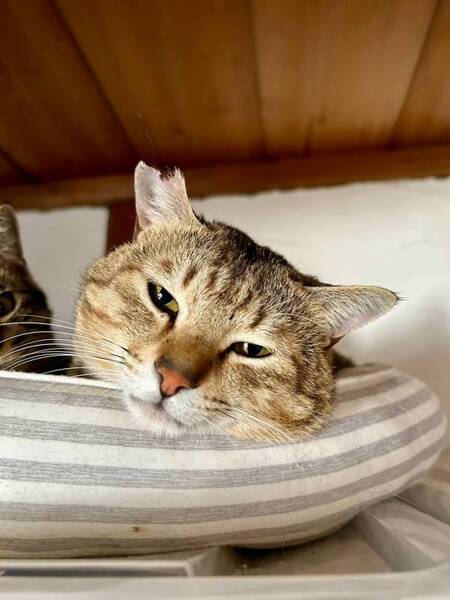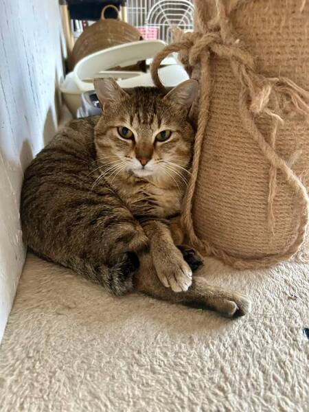 | 特徴(性格など) | まだまだ引き出し多めのキジトラくん。 仮の名を「怒目(おこめ)」と名付けています。 保護当初はかなり威嚇しており、目が合うだけでシャーシャーと言っていました。 今では怖い顔をすることはなくなり、顔つきも和らいできましたが、まだ撫でたりするようなことはできません。人がいる間は高いところにいたり、寝ていることが多いです。 本当は甘えたかもしれないし、人に近づきたいのかも知れません。まだまだ本当のおこめくんらしさが発揮できていなさそうです。 そんなおこめくんの可能性を引き出してくださるご家族様をお待ちしております。 ◆食事:偏食なし。なんでもよく食べます ◆性格:怖がり、用心深い、頑固、やや気性強め ◆お留守番:長時間可 ◆抱っこ:不可 ◆その他: *子どもがいるご家族:中学年以上可 (分別のできないお子様には怖がって近づかない可能性があります) *完全室内飼い、室内フリーでお願いいたします。(慣れるまでケージの設置は必須です) ※外猫時代は人慣れしているコについて歩くようなコでしたが、シェルターに入ってからは怖がって威嚇している状態が続いています。元々は穏やかで臆病な猫ちゃんかと思われますので、おこめくんのペースに合わせて優しく気長に見守ってくださるご家族様が希望です。 ♡毎週末•祝日に譲渡会(Enn結び会)を行っておりますので、ご応募に迷っておられる方はぜひ一度実際のおこめくんに会いに来てやってください。 ♡日々の様子はインスタグラム@enn1105にもアップしております^ ^ 【健康状態】 猫エイズ 陰性 猫白血病 陰性 |