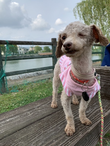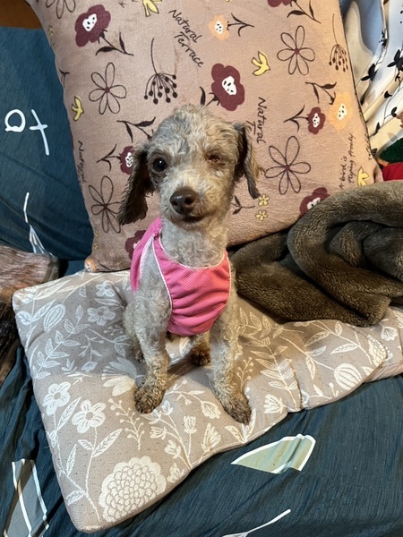 | 特徴(性格など) | とても人懐こい小さいトイプードルです。 人に身体をくっつけて寝るのが好きです。 片目は委縮して見えません(治療の必要なし) ケージの中にいる時に人の気配がするとキュンキュン鳴きます。 (矯正中) フィラリア陰性 体重 2.3kg |