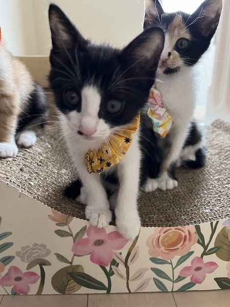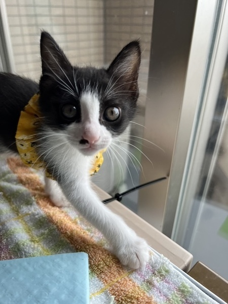 | 特徴(性格など) | ☆☆☆ご希望の方は、以下のアンケートフォームにご記入の上、送信してください☆☆☆ ねこ親希望アンケート→ http://chibawan.net/contactform_cat 【猫No】3807 【愛称】ニーナ 【性別】メス 【年齢】約2ヶ月(24/04/29頃生) 【毛色】白黒ハチワレ 【体重】670g(24/06/20現在) 【状態】ワクチン1回接種済(24/06/07)、血液検査済(エイズ-・白血病-)、トイレ躾済 【預かり場所】八王子市 【日記】Instagram @nicomama9 (https://www.instagram.com/nicomama9/?hl=ja) 【経緯】柏市動物愛護ふれあいセンターから引き出しました 【性格】他の子よりもちょっと小さめですが、男勝りな女の子です。甘ったれで、われ先に抱っこされようと膝の上に登ってきます。兄妹と仲良く毎日大騒ぎしています。 【その他】まだ子猫で、恐らく生まれたときから一緒の姉妹「つむぎ」と2匹一緒に迎えてくださるご家庭を希望します。 預かり宅での様子はインスタにご紹介しておりますので、ご覧ください。 お届けは不妊手術・マイクロチップ装着・3回目のワクチン接種などの医療が終わってからとなります。 まだ子猫ですので、お留守番がなるべく短いご家庭を希望いたします。完全室内飼育で終生愛情をもって飼養してくださり、つむぎに合った生活スタイルで暮らしてくださる方、脱走対策に最新の注意を払い、労を惜しまず入念に脱走対策を講じてくださる方、定期的なワクチン接種、必要な医療処置等の健康管理をお約束していただける東京近郊の方からのお問い合わせをお待ちしています。 大変申し訳ありませんが、子猫のため、55歳以上の方からのお申し込みはお断りすることがございますので、ご了承ください。 |