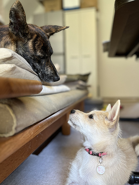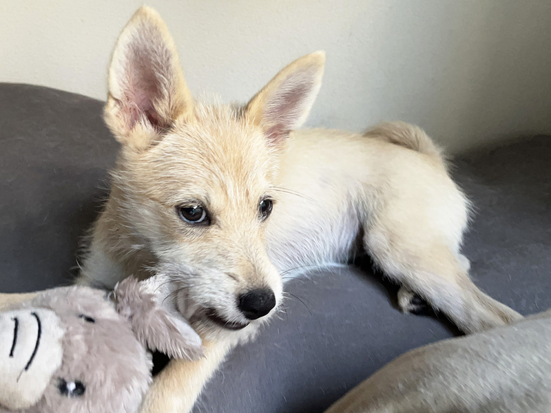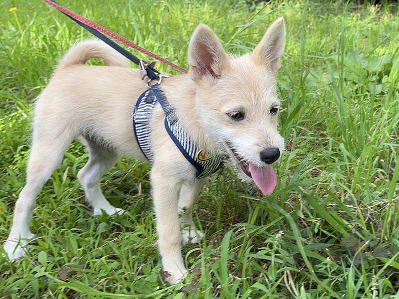 | 特徴(性格など) | ★☆性格☆★ 人にも犬にも、とても馴れています。特に人にはよく甘えてきます。もちろんまだ子犬ですから、それなりにやんちゃです。 ごはんの準備のためにサークルに入ってもらったときに、運動神経の良さとの合せ技一本!秒速で脱走…という荒業(?)も見せてくれました(笑)。 とはいえ相対的に見ると大人しい方だとは思われ(主観ですが)、手が付けられないくらい暴れまわる、なんてことはないのでご安心ください。 ★☆ごはん☆★ ドライフードを与えていますが、選り好みをするようになってきて、なかなか食べてくれないことも…。おやつや、違う味のフードは食べたりするので、好みが激しいタイプかもしれません。食物アレルギーのような症状は見受けられません。 子犬期のため現在は1日3回(朝・昼過ぎ・晩)あげています。生後6ヵ月を過ぎる頃まではこのペースで、それ以降(10月以降)は1日2回で、と考えています。 ★☆散歩☆★ ワクチンプログラムが完了していませんが、すでに石垣島で走り回っていたことも鑑みて、獣医師の判断のもと散歩も可としています。ただし、プログラムが完了するまでは他の犬との接触は避けています。 散歩は現在、30分~1時間を1日2回(朝晩)程度。歩くのは大好きで、どこでも怖がらずによく歩いてくれます。 ★☆トイレ☆★ おしっこもウンチも外派。排泄したくなると窓をカリカリかいて合図を出して…がお決まりのパターンです。 現在、トイレトレーニング中ですので、進展があれば適時「預かり日記」でご報告していきます。 ★☆留守番☆★ 吠えたり後をついてきたりといった分離不安のようなこともありませんし、留守番自体は問題なく過ごしてくれます。ケージ内で過ごすのも大丈夫です。ただしまだ子犬なので、ケージの外でのいたずらは日常茶飯事です。 おもちゃをガジガジ…くらいならカワイイものですが、テーブルや椅子の足をかじったり…ということも????大切な家具などにはガードが必要と思われます。 ★☆他の犬との関係性☆★ 石垣島では母犬、兄弟犬を含め9匹と一緒に過ごしていたため、犬との社会化は十二分にできている様子です。先住犬のいるおうちでは、良い遊び相手になってくれるのではないでしょうか。 ★☆誤飲に注意が必要☆★ コード類やペットシーツ、ぬいぐるみ、タオルや毛布…といろんなものをかじってしまうため、現在はかじらないようにトレーニング中です。 「ダメ」と言えば止めるので執着しているわけではないようですが、噛んで遊んだりしている最中、ふとしたはずみで食べてしまう可能性もあるので、齧りそうなものはあらかじめしまっておくなどの工夫が必要です。 ★☆車移動が苦手☆★ クレートに入ってのフライトが怖かったのか、苦手になってしまったようです。クレートに入っての車移動時、鼻鳴きしておしっこをお漏らししました。 ■□■□■□■□■□ ◆募集番号:197n ◆仮名:エイミー ◆犬種:雑種 ◆性別:メス ◆年齢:生後3ヵ月 ◆毛色:薄茶 ◆体重:約4kg(成犬時12kg程度を想定) ◆マイクロチップ:済み ◆狂犬病ワクチン:未接種(混合ワクチン接種2回目の約1ヵ月後に接種予定) ◆8種混合ワクチン:未完了(1回目:2024年6月3日、2回目:7月3日以降に接種予定) ◆フィラリア検査:陰性 ◆糞便検査:陰性(2024年6月14日) ◆血液検査:済み(2024年6月14日) ◆その他健康状態:狼爪が2本ありますが、健康上、特別な問題はありません。 ◆お見合い場所:神奈川県横浜市 ========== 現在のエイミーの様子については、下記「保護犬日記」でご確認ください。 【エイミーの日記】 https://copain-dogrescue.com/diary/diary-amy/ |