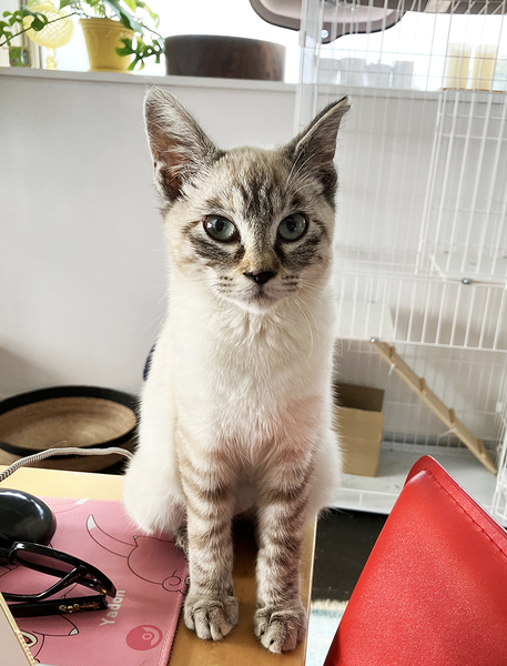 | 特徴(性格など) | キジシャムの元気な女の子です。 顔つきがシャム猫の「モダンスタイル」の血が出たのが ちょっと面白い顔をしています。 ちょっとビビりですが遊びだすと夢中で遊びます。 先住猫さんとも上手にお付き合いが出来ています。 好きなニンゲンには積極的にぐいぐい行くタイプ。 ツンデレぐあいがたまりません。 臍ヘルニアがあり近日中に手術予定です。 【猫白血病・猫エイズ陰性、駆虫済、避妊手術済、ワクチン1回済】 |