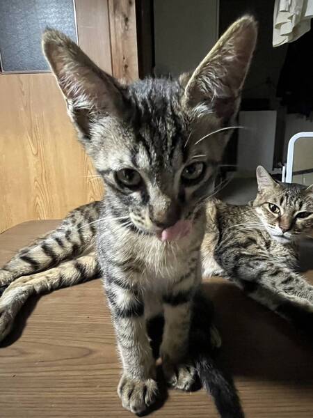 | 特徴(性格など) | 全部で6匹いましたが今は2匹の子猫がいます。 知人からみんな男の子だと聞いていたのですが、譲渡後女の子であることが判明致しました。 知人からの依頼で実際に当方、子猫ちゃんを確認出来ておらずどの子が譲渡されたのかも不明です。 実際に会うだけでもかまいませんのでご応募お待ちしております。 子猫ちゃんたちは 元気に家の中を冒険しています。 ご飯もしっかり食べてたくさん寝てます! キジトラちゃんが2匹です! |