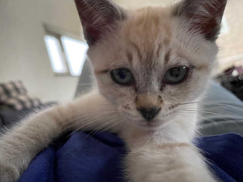 | 特徴(性格など) | 【名前】あお 【生年月日】推定2024年5月初旬頃生まれ 【種類】シャム系MIX 【毛色】シールリンクスポイント 【性別】メス 【避妊】未(適齢になり次第飼い主様でお願い致します) 【ワクチン】生後2ヶ月頃に接種予定 【駆虫】済み 【猫エイズ・猫白血病】子猫の為未検査 【健康状態】猫風邪をひいて涙目でしたが、治療し綺麗になりました。現在は鼻水などがある為、投薬中ですが元気いっぱいです。 【性格】遊ぶのも大好きだけど、なにより人が大好き。気づいたら人のお腹の上に寝てるか、寄り添っ寝てます。なでられるとゴロゴロ言いながらじゃれてきて、寝る時と遊ぶ時とがあります。主が動くと、一緒になってついてきてとても人懐っこい子です。 |