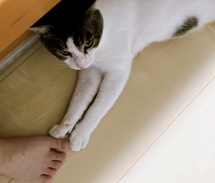 | 特徴(性格など) | 未発症猫エイズ陽性です。 白ブチでブチ模様に少しキジ柄が入ってます。 大人しく甘えん坊ですが、上から手を出すと怖がる様子があります。食欲旺盛でご飯を用意していると足に擦り寄ってきます。 多少怖がりますが、抱っこ爪切り可能です。頭を撫でられるのが特に好きで床に座ると近寄ってきます。 メス猫には首を噛まれケリケリされても怒りませんが、威嚇してくるオス猫には強気な場合もあります。 |
