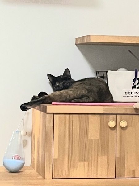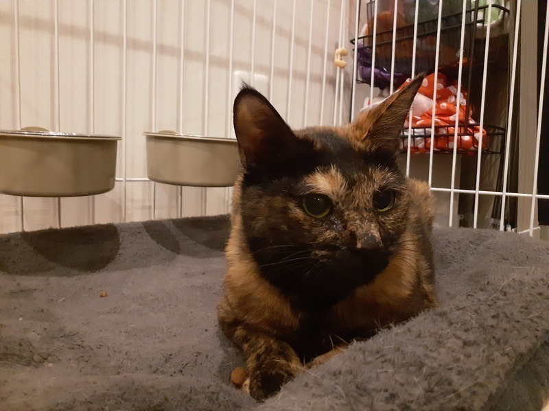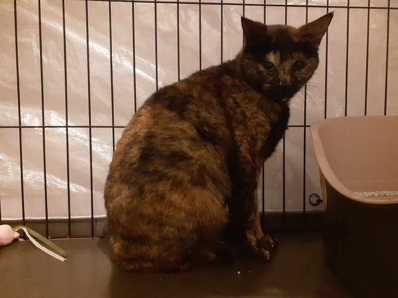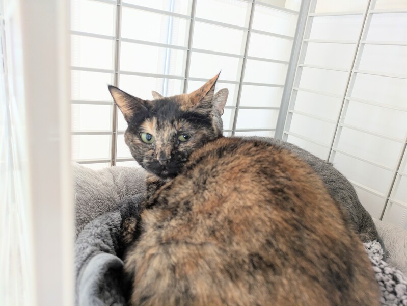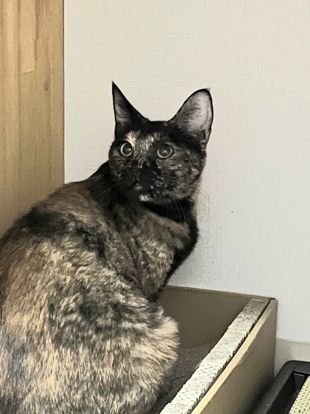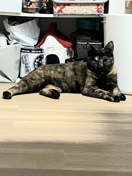 | 特徴(性格など) | 色柄 ・黒っぽいサビ 性格 ・臆病 ・威嚇はしない ・隠れがち ・静か ・猫とはうまくやれる ・ウェットフードの好き嫌いがある |