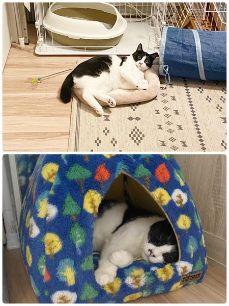 | 特徴(性格など) | 仮名:いそべ君 年齢:推定2歳 体重:5.5キロ 毛色:白黒ハチワレ ●半日程度のお留守番ができます。 ●トイレの失敗や爪とぎの失敗はありませんのでご安心ください。 ★外見★ まるいお顔 まるいお目目 まるでクリームパンのまあるい手足 鼻周りの模様 やわらかく美しい毛並み 保護時に連れて行った病院の先生にも 「アニメから出てきたみたいなお顔しているね」と言われたほど 猫好きのツボを刺激しまくる容姿をしております 瞳の色は黄金色でまんまるで澄んでいます 鼻周りの模様が個人的にツボ。いそべ君の顔を眺めては日夜ひとり悶える日々を送っています うちの旦那も いそべ君を一目見た時から「可愛い!可愛い!」と大絶賛です 被毛は気持ち毛足が長く優雅なアクセントとなり、いそべ君のかわいさをいっそう引き立てています いそべ君はひと目見たら忘れられない、そんな魅力を放ってます! ★性格★ 保護直後はとても怒りんぼで、ごはんやトイレ掃除の度に「シャー!!!シャー!!!」と威嚇をしていました。 保護時の年齢は推定1歳半。。。 まだまだあどけなさの残る子供猫の年齢 虚勢を張らないと生き抜けない環境だったことがうかがえました とにかく家でゆっくり過ごしてもらい暑さ寒さがなく、ごはんがいつもある環境を作って見守っていたところ 本来のいそべ君が出てくるようになりました 食べること大好き オヤツ大好き(すぐ完食してくれます) そして何より遊ぶことが大好きです^^ 一生懸命おもちゃで遊ぶので、遊び甲斐がありますよ☆ (リビングでおもちゃを床にフリフリすると必ず保護部屋から走って出てきます(笑)可愛いです) 遊びはダイナミックなのに部屋の物へのイタズラ等、一切しているのを見たことないです 昼間はお気に入りの場所を見つけてゆっくり過ごしてくれます 撫で撫でやブラッシングはお気に入りのベッドやケージ内だと安心して受け入れてくれます スキンシップに関してはまだまだ伸びしろがあるので、今後の成長を楽しんでもらえたらと思います おトイレも上手(鉱物系が好き) 爪とぎは段ボールの爪とぎを使ってくれます そして同時期に保護した「ちまき丸」のことが大好きなんです^^ 夜になるとちまき丸にスリスリしながら歩いてます(笑) いそべ君にとって安心感・精神安定剤のような役割が「ちまき丸」のようです^^ 気が付くと2人寄り添ってまどろんでいる姿をよく見かけます 仲のいい姿を見ると私もとても幸せな気持ちになります いそべ君にとってのちまき丸はとても大きな存在だと感じ これからもずっと一緒に過ごさせてあげたいと思い2匹一緒での譲渡を希望しています はじめて猫と暮らす方にも、長年猫と暮らしてきた方にも、お仕事で愛猫をある程度お留守番をさせてしまう方にもオススメできます。 やさしくて、気前がよくて、元気いっぱいで短所がひとつも見あたりません どうかいそべ君(とちまき丸)に心を留めていただければ幸いです ■銘柄を問わず何でもおいしく食べます(現在はロイヤルカナン ベッツプラン) ■留守番は半日程度できます ■爪とぎは与えられた猫用爪とぎやキャットタワーを上手に使ってます ■トイレの失敗はありません(鉱物タイプが好みなようです) |