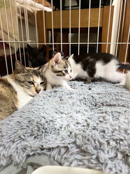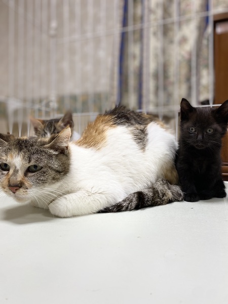 | 特徴(性格など) | 子育て中に保護されました。 警戒心はまだありますが、少しずつ落ちついてきています。他の猫とも仲良くしています。 仔猫が3ヶ月になりましたので、募集を開始しました。 仔猫の1匹と一緒に迎えて頂ける方も募集しています。 |