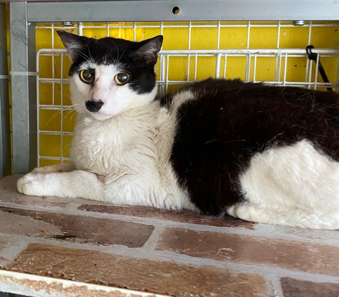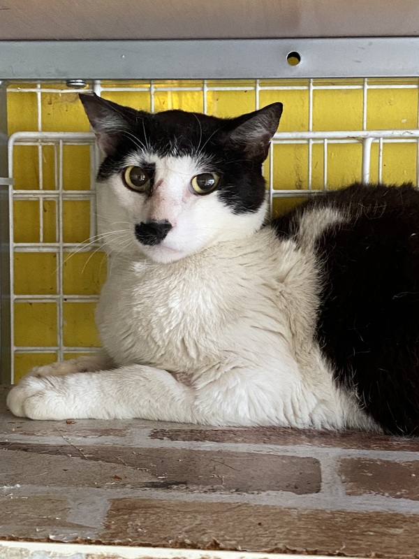 | 特徴(性格など) | おとなしい性格で、野良猫の時は他の猫に餌をとられたりもしていたようです。 こちらでは、トラブルなく過ごしています。 フードもしっかり食べています。 野良猫時代に他の猫にいじめられて、鼻の頭を怪我していましたが、今は治ってきています。 エイズ、白血病検査はいずれも陰性。 |