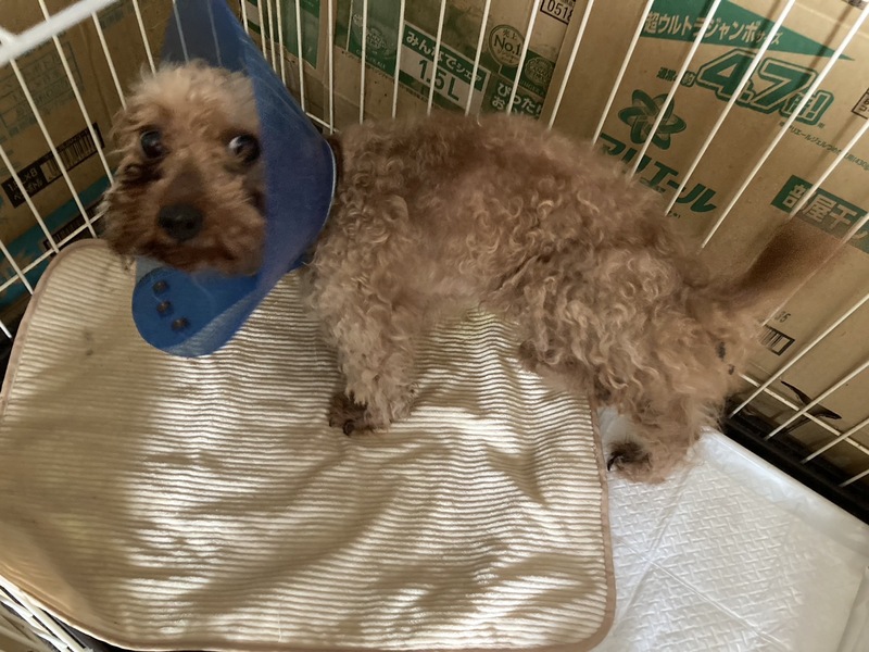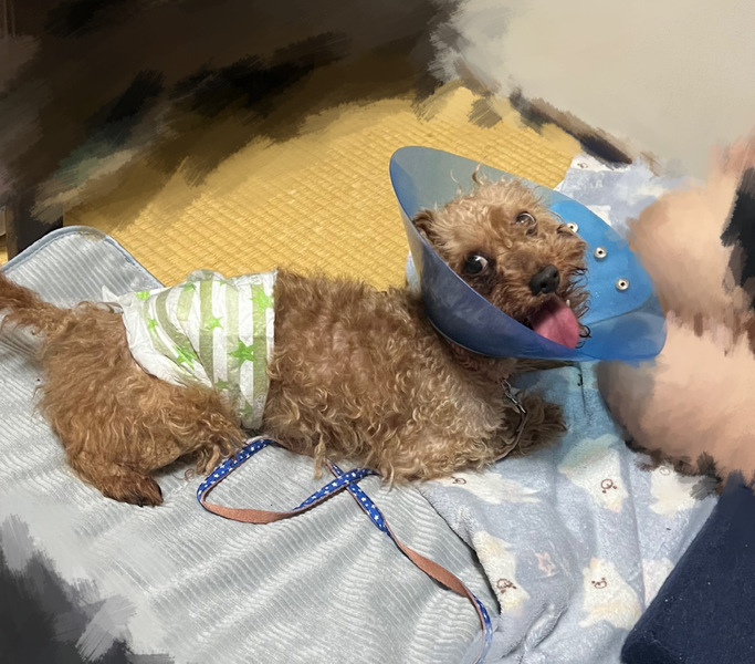 | 特徴(性格など) | 人が好きで足元に付きまといながら着いてきます。 ビビりで大きな音、笑い声などで吠えます。 夜になってくると眠くなり勝手に寝ます。起きるのは早朝4時頃 オムツが嫌いでオムツ取り外しする際は唸って噛もうとします。 (噛むフリもします。噛みはしますが本気噛みではなく甘噛み) 人が見えないと甘えた声で鳴きます。 不意に何も無くても噛もうともするので常にエリザベスカラーを着用してます。 しつけはされてません。多分トイレのしつけも出来てない。 |