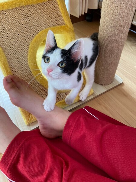 | 特徴(性格など) | ☆性格・特徴 180gで保護したセンちゃん! 兄弟よりも一回り小さな身体だったので心配しましたが、今はすっかり元気なやんちゃボーイです♪ 身体つきは細身の痩せ型ですが、健康状態は問題ありません! ご飯もお水もばっちりです♡! 人によじ登ってみたい、飛び乗って来たり男の子らしい子猫ちゃんです(^^) 大切にしてくださるご家族さまとの出会いを待っております! 子猫なので お留守番が短い方を希望させていただきます。 ☆模様 白黒ハチワレ ☆健康状態 良好 ☆体重 1.5kg(7/22測定) ☆猫エイズ FIV 陰性 2回確認 母猫(陰性) ☆猫白血病 FeLV 陰性 2回確認 母猫(陰性) ☆今後の医療措置 ワクチン 2回目 マイクロチップ装着 ☆単身者応募 不可 ☆高齢者応募 不可 *掲載内容は6/28時点のものです。 子猫は日々成長しています。最新の情報は預かりさんやOHANAのインスタグラムをご覧ください。 |