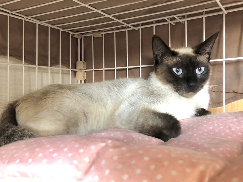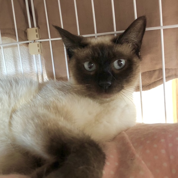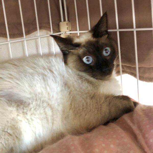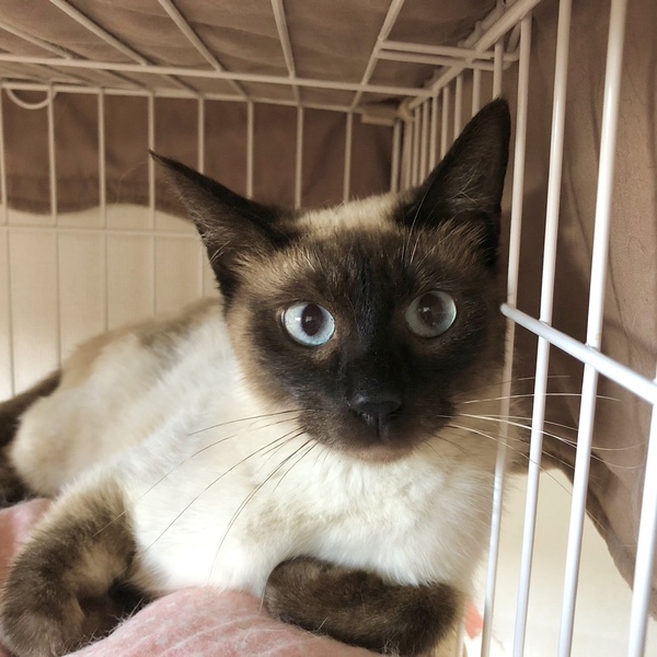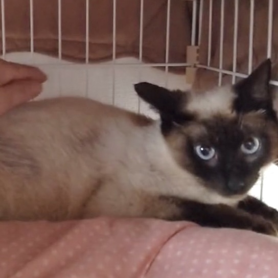 | 特徴(性格など) | シャム猫の未夢(みく)ちゃん。 毛並みが美しい女の子です。 保護したばかりで緊張しているのか、ケージの隅で丸まっていますが、触っても怒りません。 だんだん表情が柔らかくなっているので、安心できるおうちが見つかればリラックスした姿を見せてくれると思います! 未夢ちゃんを温かく迎えてくださる方をさがしています。 当団体のホームページや他のサイトでも同時に募集を行っているため、少しでも気になられましたら、どうぞお早めにお問い合わせくださいね。 |