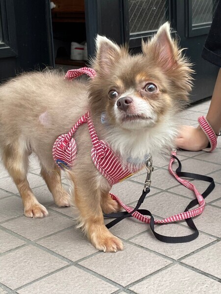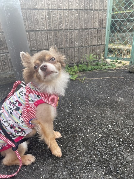 | 特徴(性格など) | 一般家庭で可愛がられた経験がないようで、お家や人に慣れるのに少し時間がかかります。 オヤツでつられるタイプです。 お散歩も未経験でしたが、散歩は好きなようで、元気にお散歩行っています。 お世話をしてくれる人には慣れて風呂場までついてくるストーカー君です。トイレは外派。室内でのトイレはまだ完全ではありません。 犬との付き合いは、おっなびっくりですが、自分から喧嘩をしたりしません。 ひとりになると、しばらく遠吠えします。今はまだ留守番らしい留守番をしたことがないので、長時間留守にするとどんな様子かは分かりません。 総じてチワワらしい性格かなと思います。 ちぃ太郎が慣れるのを待ってくれる忍耐強い飼主さんを待っています。小さな子供さんのいない静かな家庭向きです。 |