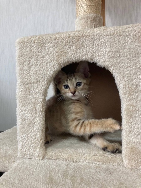 | 特徴(性格など) | <初期医療> エイズウイルス検査:陰性 白血病ウイルス検査:陰性 ワクチン接種:済み ノミ・ダニ駆除薬:済み 糞便検査:済み 推定1.8ヶ月のサビタビーの女の子です。ちょっと控えめで、膝の上からまわりを見るのが好きで、兄の『たむ』を見て、自分がどうすれば楽しく遊べるか考える学習力の高さがある賢い子です。いつも兄の『たむ』と追いかけっこして遊んでいるので、一緒にずっとのおうちに行けたら嬉しいです。まだ小さな子猫のため、お留守番の少ないお家を希望します。2匹一緒に初心者様にもオススメです。 えむの日々の様子は、以下のブログをご覧ください。 https://ameblo.jp/toko-chino/ |