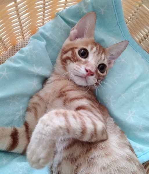 | 特徴(性格など) | 茶トラ男の子の2匹のうち、短いかぎしっぽ、お目々ぱっちりな方がみい太くんです 保護した生後4週くらいから人の手でミルクをあげているので、三兄妹とも人慣れはばっちりです! ずっと3匹で遊びながら成長しているので社会性もしっかりついていて、人見知り、猫見知りしません 誰にでもフレンドリーな子たちなので、最初の1匹目にもおすすめです 兄妹一緒のお迎えも大歓迎です! みい太くんはとにかく甘えん坊さん 気づくと足元にくっついて撫でてあげるとずっとグルグル。。 眠たくなると、自分や他の子の肉球をちゅっちゅっと吸う姿がとてもかわいいみい太くんです 一度トライアルに行き、先方のやむを得ない事情で帰って来ましたが、みい太くんはとてもお利口さんでした、と褒めて頂いています ・トイレしつけ済 ・ノミ・ダニ駆除済 ・検便、駆虫済 ・ワクチン接種2回済 ・猫免疫不全ウイルス陰性 ・猫白血病ウイルス陰性 ・3匹とも保護時にケガはなく、健康状態は良好です ご質問は何でもお気軽にどうぞ! |