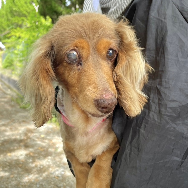 | 特徴(性格など) | ダックスフンドのリボンちゃん、5kg。 高齢の方が大事に飼っておられましたが、施設に入られることになり、当団体で保護しました。 ボランティアで一生懸命お世話していますが、いつもどこか不安げなリボンちゃん。 寂しいのか、だっこするとじっと腕の中に収まっています。 一日も早く安心できるおうちを見つけてあげたいです。 リボンちゃんを温かく迎えてくださる方からのご連絡をお待ちしております。 ●シニア世代の方でもご応募可能です。 |