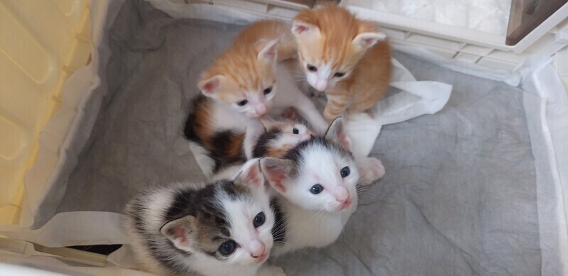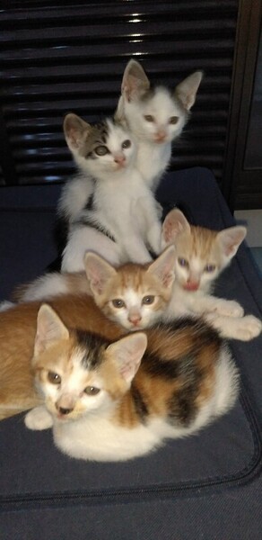 | 特徴(性格など) | 茶色(2匹) 白黒(2匹) 全ての猫が元気いっぱいです。 画像追記しました。 三毛はおかげさまで里親様が決定しました。 |