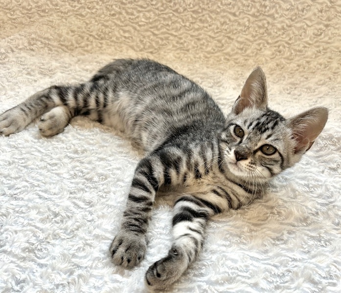 | 特徴(性格など) | 【仮名】バジルくん 【性格】イケメン系サバトラのバジルくん♪ クッキリしたシルバーのトラ模様が 爽やかな雰囲気をまとってます♪ でも兄妹で一番のゴロゴロにゃんこ♪ 目が合っただけでゴロっちゃいます(笑) 運動神経もなかなかで元気よく遊べる一面もグッドです! みんなとにゃんプロして良く寝てよく食べ スクスクと成長中のハナマルにゃんこ♪ ともに過ごしている兄妹か同世代チビと 一緒のお迎えをお願いしたいと思います♪ ※1ピキ譲渡不可 |
