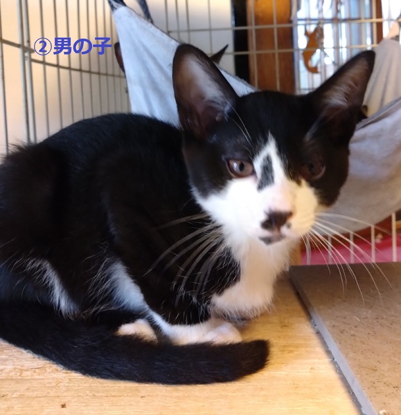 | 特徴(性格など) | 黒のハチワレです。 とても元気な男の子です。 食欲も旺盛ですくすくのびのびと育っています。 |