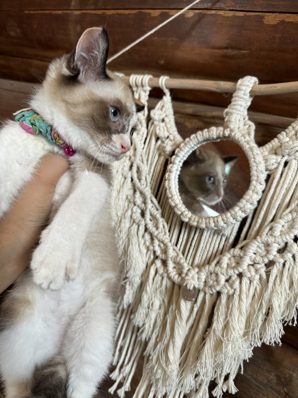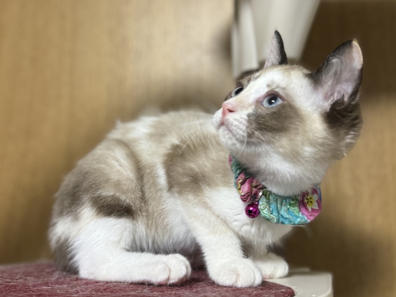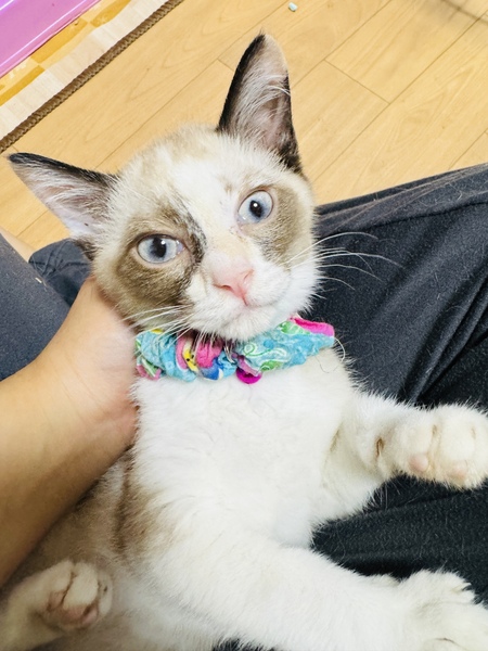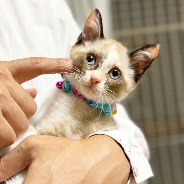 | 特徴(性格など) | 大人しく抱っこもなでなでもできます。 とびっきりの美猫さんです。 シャム系ミックスで、耳にはオレンジ色模様もあり、パステル三毛要素もあります。 ドライフードも食べられます。活発で元気です。 ●猫エイズ・猫白血病 陰性 ●3種混合ワクチン接種 1回済(あと1回接種します) ●ノミダニ駆虫 済 ●検便 済 駆虫 済 ●避妊手術 未 |