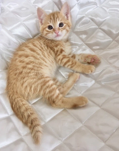 | 特徴(性格など) | 【仮名】ふわりちゃん 【性格】みんな大好き♥茶トラ女子のふわりちゃん☆ 少し小さめだったので兄妹よりデビューが遅れましたが、 モリモリ食べてスクスク成長しました! 天真爛漫、パワフルな女の子で、飛んで走って、 遊びたくて遊びたくてお昼寝してるきらりくんに にゃんプロレスを仕掛けます(笑) そして女子特有のちょっとツンデレがたまらん♪ 甘えた時には何でも許しちゃいます♪ 一緒に過ごすと、とっても楽しい女の子です♪ ともに過ごしているきらりくんと 一緒のお迎えをお願いしたいと思います♪ ※1ピキ譲渡不可 |