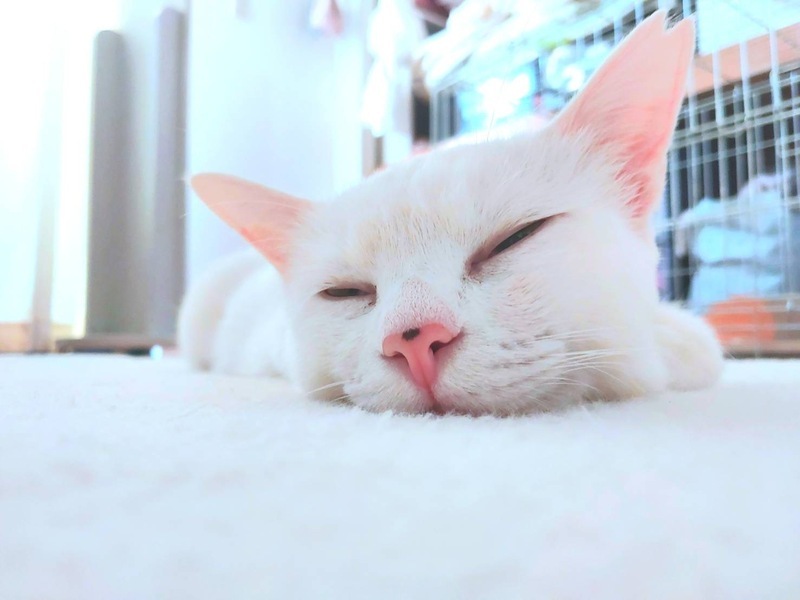 | 特徴(性格など) | 大きな瞳のしろねこのてんちゃん(天使)です。 映画『すずめの戸締まり』に出てくる大臣とよく似ています。 手足も長くて身体はしなやかです。 人間には人見知りしません。 他のねこさんと遊びたそうにします。 一度も他のねこさんと遊んだ事がないようです。 抱っこはイヤなのに側にいないと不安なのかどこでも着いてきます。 猫じゃらしが大好きです。ジャンプ力も抜群なお嬢様ねこです。 |
