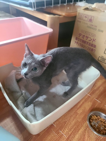 | 特徴(性格など) | 種類: ロシアンブルー 毛色:ブルー 年齢: 推定6才 体重: 2.9キロ 性格: 臆病、慎重派 トイレ: シートまだあまり動けずその場にやってしまいます 日常の様子:ほとんど動きません。触ると、固まってしまいしつこく触ると怒ります。オモチャで遊ぶのは好きなようです。 お手入れ:シャンプータオルでこまめに拭いて、ブラッシングで清潔を保ってください フード: BEAUTVpro室内猫用 健康状態 抗体検査:(FIV・FeLV)マイナス ワクチン:3種混合接種済み 避妊:手術済み その他:聴診・検便 異常なし、ノミダニ駆除済み・駆虫薬投与済み |