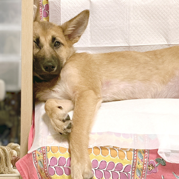 | 特徴(性格など) | 【愛称】 みみりん 【犬種】ミックス 【性別】メス 【年齢】推定3-4ヵ月(2024/3頃生れ) 【毛色】茶、黒 【体重】6.7kg(6/30 現在) 【状態】混合ワクチン1回目接種済、ノミダニ駆除済、駆虫済、検便(-) 【人馴】少し怖がりですがすぐ馴れます 【預かり場所】千葉県松戸市 【日記】【Instagram】 https://www.instagram.com/inuko_wanwan 【経緯】茨城県動物指導センターより引き取り 【性格・その他】 少し怖がりですが甘えたいざかりの大人しめな女の子です。 嬉しい時には控えめに尻尾をふってくれます。散歩中、挨拶してくれる人や犬に対しても控えめに尻尾をふっていました。今のところ全てにおいて控えめなリアクションですが、預かり宅にきた初日と比べるとこれでもかなり感情を表に出してくれるようになったので、今後成長するにつれてもっとリアクションが出せるようになるかもしれません。 甘えたい時は手のひらに鼻を突っ込んだり、控えめにお腹を見せてくれたりします。お腹を撫で終わるともっと、というように手で催促したりするようにもなりました。 ちょっとずつですが新しい環境に慣れてきて一緒におもちゃで遊んだりするようになりました。子犬らしくボールを追いかけ回したりおもちゃの引っ張り合いっこを楽しんでいます。独りの時は熱心におもちゃを齧ったりしています。たまにカーペットなどを齧ったりすることもありますが怒るとすぐやめます。遊びに夢中になっているときに吠えたりしますが、基本的にはあまり吠えません。 食事は1日3回子犬用のドライフードを食べています。コミュニケーションの一環としてコマンドの練習もしていますが「おすわり」はかなりの確率でできるようになりました。 トイレは今のところ家の中と外、半々くらいの割合です。トイレシートにしてくれることもありますが、違う場所にしたりもするので引き続き練習が必要です。 お昼寝など明るいうちは好きなところで寝ており、今はソファとカーペットの上で倒れ寝するのがお気に入りなようです。夜寝るときはケージの中で寝るようにしています。 少しずつお散歩の練習も始めています。草や虫に興味津々で探検を楽しんでいるようでした。走っている車や自転車などは怖がっていない様子でしたが、大きな音を出す大型車やバイクなどにはびっくりして逃げようとするため注意が必要です。 まだ幼く初めてのことに対して慎重派ですが、経験を積んで成長している真っ最中なのでこれから色々馴れていくのかなと思います。 まだ幼齢ですので、長時間の留守番がない環境のご家庭で暮らしてもらいたいと思っております。生後半年時点までの不妊手術が必須です。 成長後の大きさは予測できないためサイズや体重に制限のあるお宅は不向きです。今後15年以上先もお世話ができるかご一考いただいてからご応募いただければ幸いです。 成長後も引き続き 室内飼育で健康管理を必ず行ってくださる関東圏内のペット飼育可のお住まいの方、また厳重な脱走・逸走防止の対策をお約束いただけて、終生みみりんちゃんと暮らしを共にしてくださる方からのお問い合わせを心よりお待ちしております。 -------------------------------------------------------- 高齢者:不可 単身者:可 【お申し込み】↓よくお読み下さい↓ 特徴、譲渡条件や譲渡までの流れをよくお読み頂き、 直接 いぬ助けのホームページよりアンケートを送って下さい。 ↓ → https://www.inudasuke.com → 里親希望アンケート (こちらのサイトのア ンケートではお時間を頂く場合がございます。 直接いぬ助けのHPよりお願いします。) 【いぬ助けSNS】 いぬ助けHP → https://www.inudasuke.com フェイスブック→ https://www.facebook.com/inudasuke/ インスタグラム→ https://www.instagram.com/inudasuke/ |