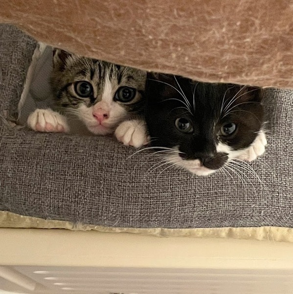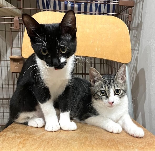 | 里親募集する理由 | 5月31日、TNR活動中に姉妹仔猫を無事に保護することができました。(7月16日、母猫さんのTNRをしました。母親さんは今は優しい餌やりさんのお庭で暮らしています。) 保護した5月31日の体重は約950gくらいでしたが、今は3キロくらいになっています。毎日よく寝て遊び食べて、すくすく成長中です。推定お誕生日は、3月25日頃のようです。保護直後に駆虫薬(レボリューション)をしました。保護した時から猫風邪の症状はありませんでした。血液検査は猫エイズも猫白血病も、共に陰性でした。6月15日にワクチン接種1回目、7月6日に2回目を終わらせました。7月16日不妊手術を受け、駆虫薬(ネクスガード)もしました。毎日元気に走り回って、体格もしっかりしてきています。お世話しやすくなりましたので、猫はじめてのおうちでも大丈夫です。いつでもトライアルに出発できそうです。 |