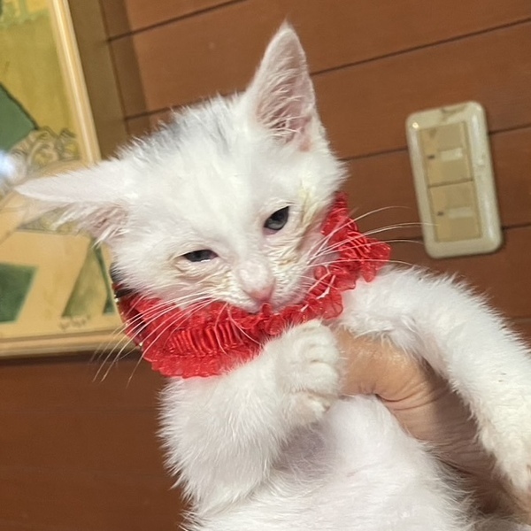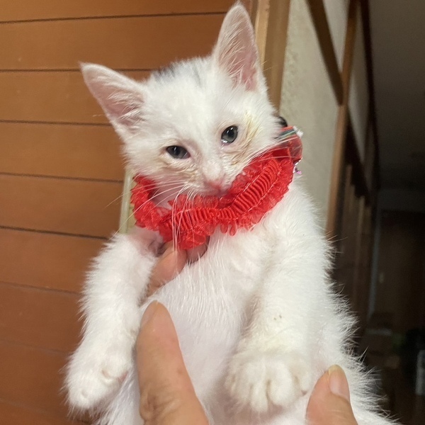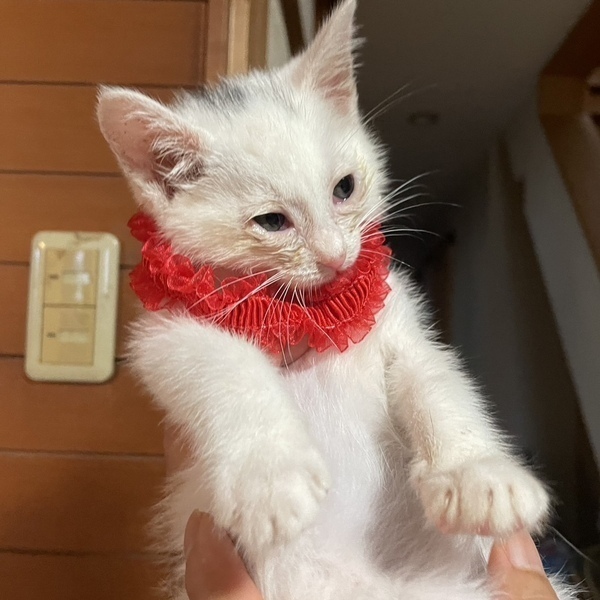 | 特徴(性格など) | ほぼ白猫の白黒の子猫、美空(みそら)ちゃん。 100gから、預かりボランティアさんにミルクで育ててもらいました。 夜空くんと一緒に保護しました。 夜空くん:https://satoya-boshu.net/foster/detail.php?@DB_ID@=349408 かわいい美空ちゃんを、温かく迎えてくださる方を探しています。 当団体のホームページや他のサイトでも同時に募集を行っています。少しでも気になられましたら、どうぞお早めにお問い合わせくださいね。 |
