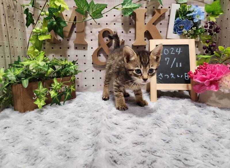 | 特徴(性格など) | 甘えん坊で食いしん坊な活発です。 キジトラの男の子。 かりかりフードが食べれます。 |