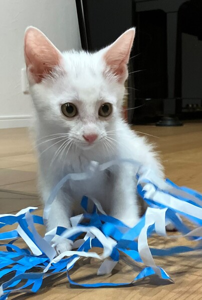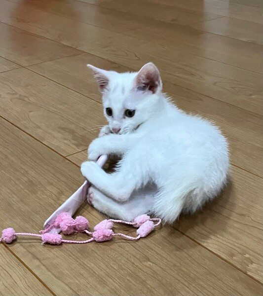 | 特徴(性格など) | ★ムク ★オス ★約2ヶ月 ★ふわふわな白い毛にまろ眉と短いしっぽがチャームポイント。遊ぶのが大好きでいつも何かにじゃれているかわいい子です。 【医療処置】 検便︰済 ノミダニ虫駆除︰済 3種混合ワクチン ︰1回目 済 2回目 予定 エイズ白血病ウイルス血液検査︰陰性 去勢避妊手術︰未 健康状態︰良好 |
