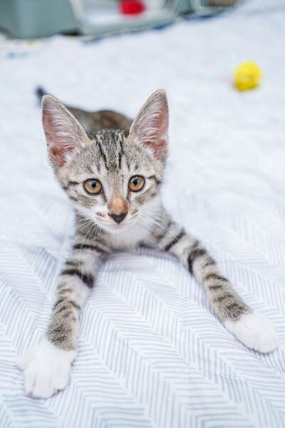 | 特徴(性格など) | ★仮ネーム ゆきち ★性別 男の子 ★月齢(予想誕生日) 5月上旬 ★性格 ちょっぴりビビリな甘えん坊男子。短いソックス柄とハートのお鼻がチャームポイント。動きが素早く、走り回るのも大好き。おもちゃも全力で遊びます。ナデナデするとスリスリゴロゴロ、お膝の上でそのまま寝ちゃうことも。 【医療処置】 ノミダニ虫駆除:済 3種混合ワクチン:1回目済 エイズ白血病ウイルス血液検査:陰性 去勢手術:未 健康状態:良好 |