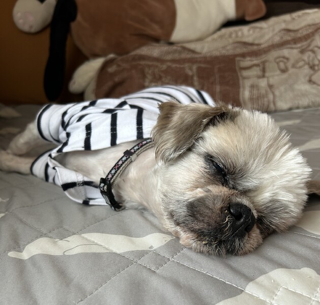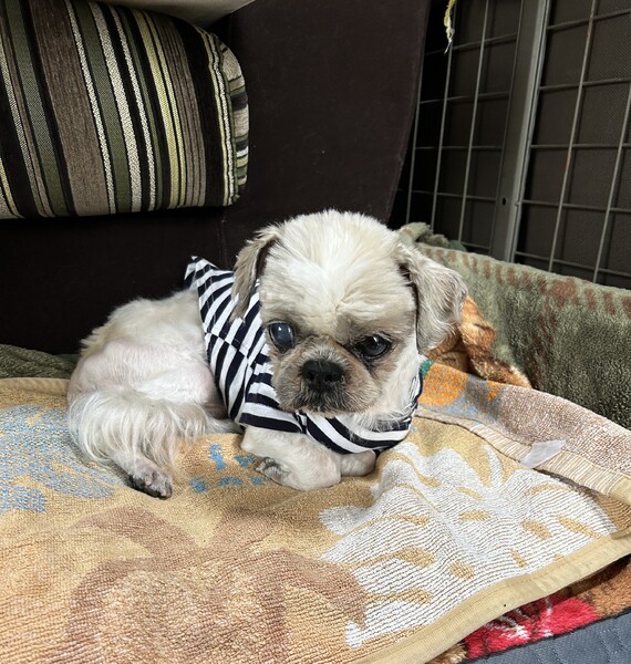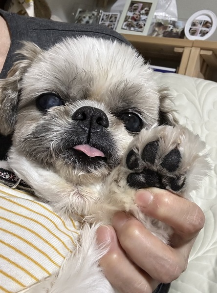 | 特徴(性格など) | 【はじめに】 ◉預かりブログ・HP・譲渡条件を必ず熟読の上、アグリドッグレスキューの専用フォームからご応募お願いいたします。 アグリドッグレスキューHP https://aguri.nomaki.jp/ 預かりブログhttps://ameblo.jp/hamami3928 譲渡条件 http://aguri.nomaki.jp/z.html ★【アグリドックレスキュー応募アンケートフォーム】★ http://my.formman.com/form/pc/HSiHA19xGo1sxlwu/ ゆあくん(仮名) ・シーズー おとこの子 ・年齢 13歳 ・体重 4.4kg(2024.11.02) 《医療関係》 ・去勢手術済 ・混合ワクチン接種済 ・狂犬病ワクチン接種済 ・スケーリング済 ・膵炎治療済 ・肝炎治療済 ・膀胱炎治療済 ・両目白内障 左目…角膜損傷による色素沈着あり ・マイクロチップ装着済 【様子観察・定期検査・処置】 ・前立腺肥大=様子観察(去勢手術後、小さくなってきています) ・腎不全ステージ2=定期検査 ・肝炎=定期検査 ・右膝関節炎=毎月のリブレラ注射が必要です 《性格》 とっても穏やかで落ち着きがあり、吠えない・噛まない・暴れない、の3拍子きっちり揃っています! 預かりを後追いしたり、いつの間にか足元に居たり隣りに寄り添って寝ているしっとり系の甘えん坊です 《トイレ》 シートの認識は無く、ゆっくりトレーニング中です 排便は歩きながらしますが綺麗に拾える優良便なので手間はかかりません 《食事》 腎不全と膵炎再発予防のため低脂肪・低蛋白の食事になります 食欲旺盛でよく食べてくれますが、飽きっぽい傾向があります 《散歩》 右膝関節炎のため現状は外には行かず、預かり宅の庭を自由に歩かせています 《他犬・猫》 アグリっ子先輩のピノールくんの事は大好きで、ひたすら舐め続けます ニャンコとも問題なく同じ空間で過ごせています 《その他》 ・人の声には反応しないので耳が遠いかもしれません 手を叩く音にはよく反応します ・気配無く気付くと足元に居ることも多いので、蹴飛ばしたり踏んづけたり、また人も転倒しないよう注意が必要です ・新しい環境では現状と違う行動が見られる場合があると思いますが、ゆとりを持って温かく見守り接してください ・お留守番もイタズラせずに出来ますがシニアなので残された時間を一緒に多く過ごしていただけるようお留守番時間の短いご家庭を希望します |