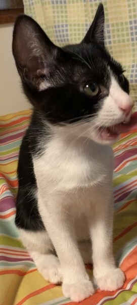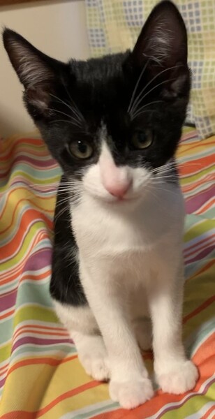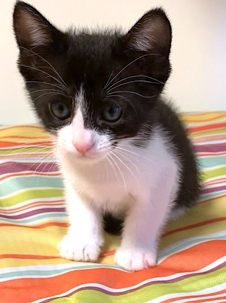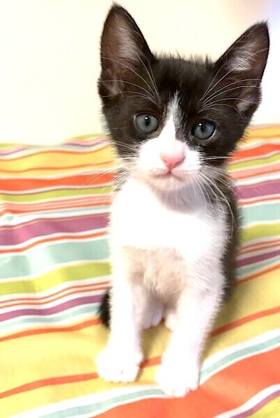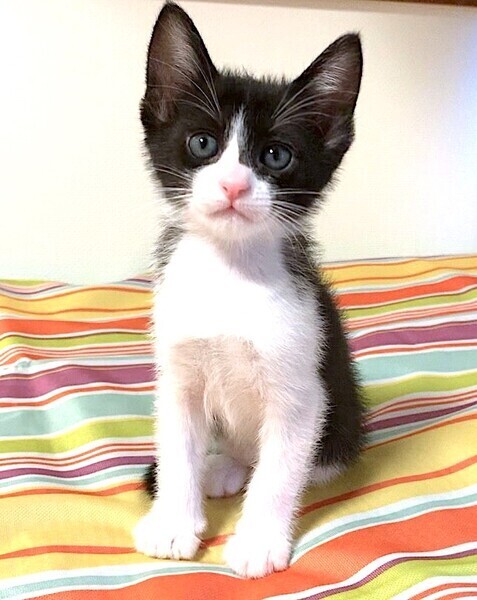 | 特徴(性格など) | ハチワレ柄の元気な男の子です。 口元がきれいなピンク色でコントラストが愛らしくオシャレです。 好奇心旺盛で兄弟とプロレス遊びや追いかけっこ、オモチャや段ボールハウス遊びが大好きです。 |
