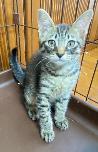 | 特徴(性格など) | 毎日元気いっぱいです。 母猫に甘え、兄弟猫と楽しそうに遊んでいます。誕生日は4月28日です。 こちらで産まれ、母猫に穏やかに育てられたので、表情が豊かでかわいい子です。 |