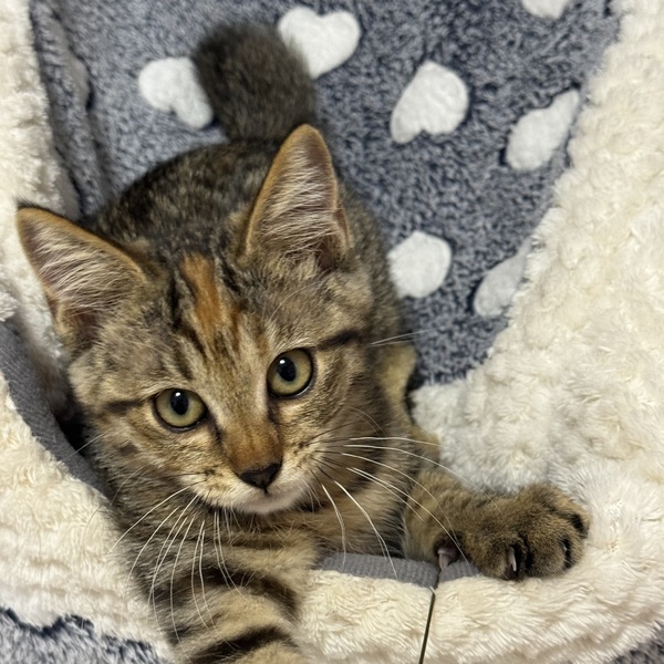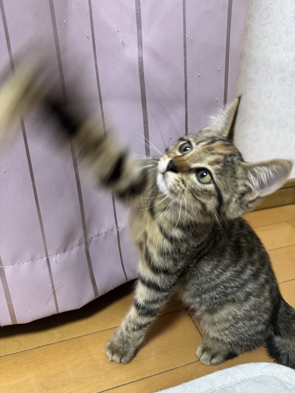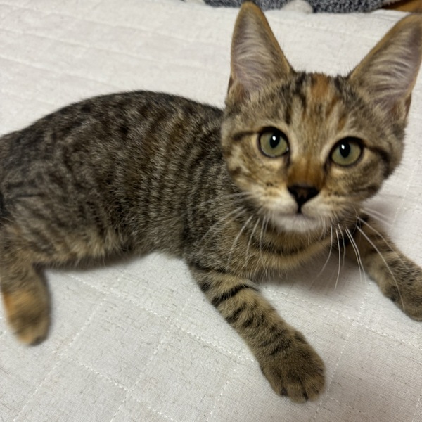 | 特徴(性格など) | キジトラの女の子で、人馴れしています。 猫じゃらしで遊ぶのがすきです。 トイレは砂の上でちゃんとできます。 猫エイズ・白血病ともに陰性 ノミダニ駆除済み・便検査異常なし 爪切り・シャンプー済み 健康状態に特に問題はありません。 |