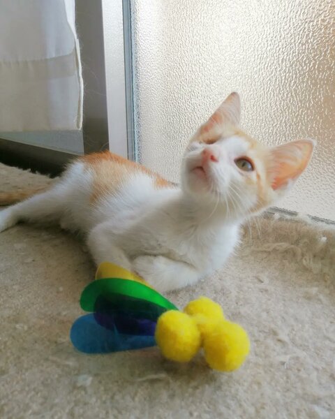 | 特徴(性格など) | 生後3カ月ほど、体重1キロほどの美人なオスの仔猫です。 人見知りせず、人も猫も大好きでよく遊びます。 一度覚えたことは忘れない、とっても賢い仔猫です。 赤ちゃんの頃に猫風邪で右眼を失ってしまったようですが、視力は問題なく、日常生活でハンデを全く感じさせない元気な男の子です★ しっぽが長くて美しく、手足も長い美形さんですが、まだまだ仔猫らしいあどけなさがとっても可愛いです。 ノミダニ駆除、トイレのしつけ、爪切り、動物病院での健康診断済みなので、スムーズにお迎えいただけると思います。 |