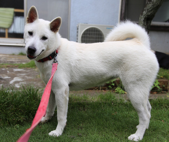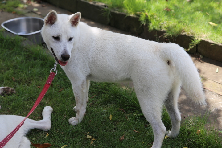 | 特徴(性格など) | 仮名:ゆき 性別:女の子 年齢:推定7ヶ月 ※中型犬(18キロ前後)になる予想です 元気いっぱい!明るく素直な女の子です。 生後4か月齢のときに里親さんが決定し2ヶ月間可愛がられて過ごしましたが、先方の諸事情により戻ってきました。ゆきには何の問題もないこと本犬も傷心の様子もなくいたって元気なので再募集をしております。 身体はスクスクと育ち大きくなってきましたが、まだまだ子犬なので全てのものに興味深々です。 お散歩中に他犬と行き交うときは遊びたくてたまらないようで興奮します。(軽くスルーされてます) 水が大好きです。水飲みの器から水を掻き出して床をびしょびしょにしたり、浴槽内に浅く入れた水を喜び無邪気に遊びます。天真爛漫さはそのまま、成長とともにゆきなりにいろいろ学習はしています。まだ要求吠えがありますので犬が吠えてもトラブルにならない環境が好ましいと思います。 特に猫の動きに反応して吠えてしまうので先住猫さんがいらっしゃらないご家庭がいいかと思います。 人が大好きで人見知りも一切ありません。お散歩中も可愛いね~と撫でてもらえるとしっぽフリフリ、身体をクネクネ嬉しいと表現します。この長所を伸ばしながら育てていただきたいです。 車酔いが酷く乗車拒否します。 トイレは里親さん宅では失敗無しでしたが、帰ってきてからは成功率80%くらいに下がってしまいました。今後も根気強いトレーニングが必要となります。 まだまだ遊び盛りやんちゃ盛りの子犬です。叱ったり体罰はせずに大らかに育ててください。 寛大な心でゆきと向き合い愛育してくださる里親様を募集いたします。 |