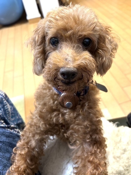 | 特徴(性格など) | 性別:オス 犬種:トイプードル 毛色:レッド 年齢: 推定8〜9歳 体重: 4.7kg 性格:臆病。人が好き トイレ: 足上げオシッコはしません。 散歩: 上手に出来ます。人が好きで、すれ違う人全ての後についていこうとします。他犬には関心を示しません。 日常の様子:ゲージの中でも外でもグルグル一方向に回っていることが多いです。声をかけると止まって寄ってきます。ハイヒールで歩いてるような歩き方をします。そのためか、ちょっとした段差や階段の登り降りを怖がります。練習してだいぶできるようになりましたが、まだまだ危なっかしい感じです。人が好きで後追いをします。 ともすればグルグル回って排泄物を踏み歩くので、注意が必要です。お留守番はゲージ内ですが、基本的に室内フリーで過ごしています。 お手入れ:毎月のトリミング・毎日のブラッシング・歯磨き・耳掃除・涙やけケアなど フード: ユリナリーs/oからプロフェッショナルバランスアレルゲンケア&PHコントロールに変更 健康状態 フィラリア:陰性(-) ワクチン:5種混合接種済み マイクロチップ:装着済み 避妊・去勢:手術済み その他:触診・聴診・血液検査・検便、異常なし、駆虫薬投与・ノミダニ駆除済み・スケーリング済み 特記所見:肌の痒みが出やすい為、週1度のシャンプーで様子をみています。 |