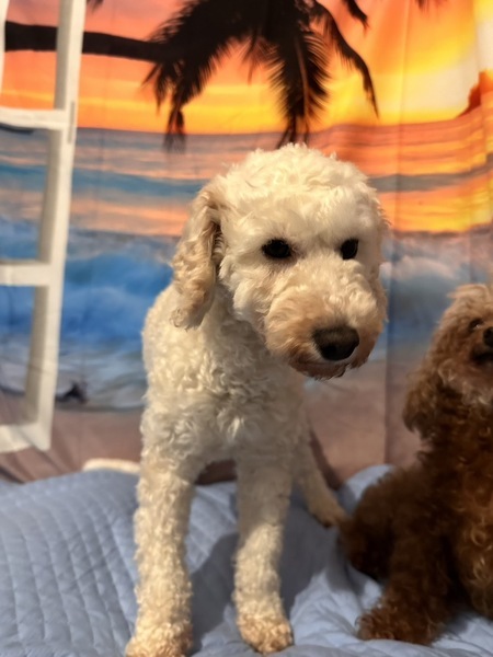 | 特徴(性格など) | 性別: メス 犬種: トイプードル 毛色: ホワイト 年齢: 推定年齢3~4才 体重: 4kg 性格:甘えん坊 トイレ: シート認識なし 散歩: 怖がりながらもしっかり歩いてくれるようになりました。 日常の様子:とにかく甘えん坊で、ずっと人間にくっついていたく、離れず側にいます。ゲージに入れると1日動いているので、お留守番と就寝時は、フリーにしてます。犬猫問題なく過ごせますが、相手がしつこいと噛みつきます。 お手入れ:毎月のトリミング・毎日のブラッシング・歯磨き・耳掃除・涙やけケアなど ※トリミング犬種なので、必ず毎月1回サロンでトリミングをして可愛く清潔にして頂ける方、それだけの経済的余裕がある方を希望します フード: ブラバンソンヌ 健康状態 フィラリア:陰性(-) ワクチン:5種混合ワクチン済み マイクロチップ:装着済み 避妊・去勢:手術済 その他:触診・聴診・血液検査・検便、異常なし、駆虫薬投与・ノミダニ駆除済み・スケーリング済み 特記所見:声帯切除されている為将来気管の病気になる可能性があります |