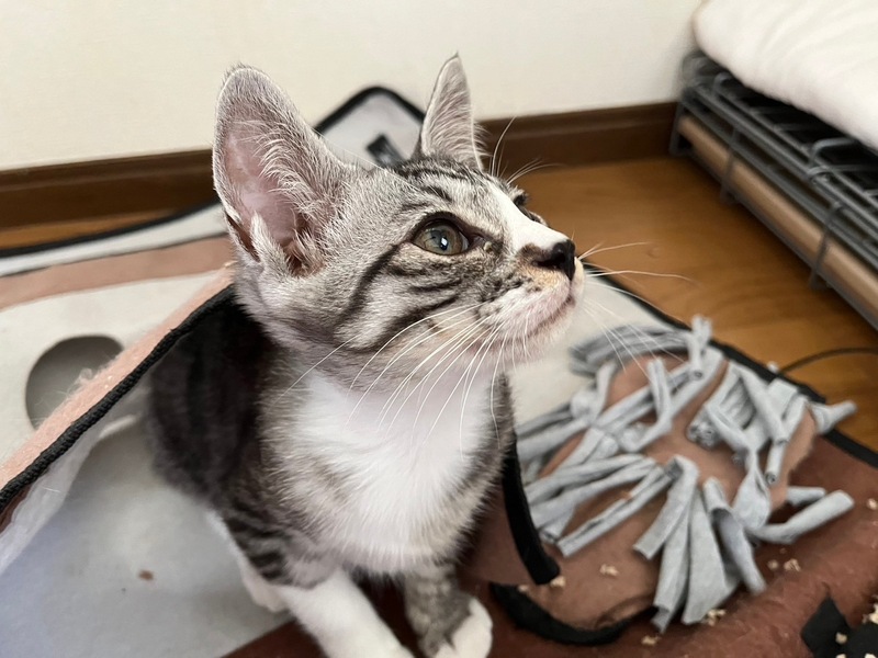 | 特徴(性格など) | マイペースでとっても遊び好きなあさり! 人にも慣れておりとっても飼いやすい子猫ちゃんです。 月齢は2ヶ月半〜3ヶ月程度 元野良猫ちゃんのため誕生日不明です |